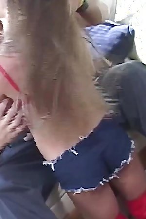 "Good looking German blonde pleasing two hard cocks with her holes"